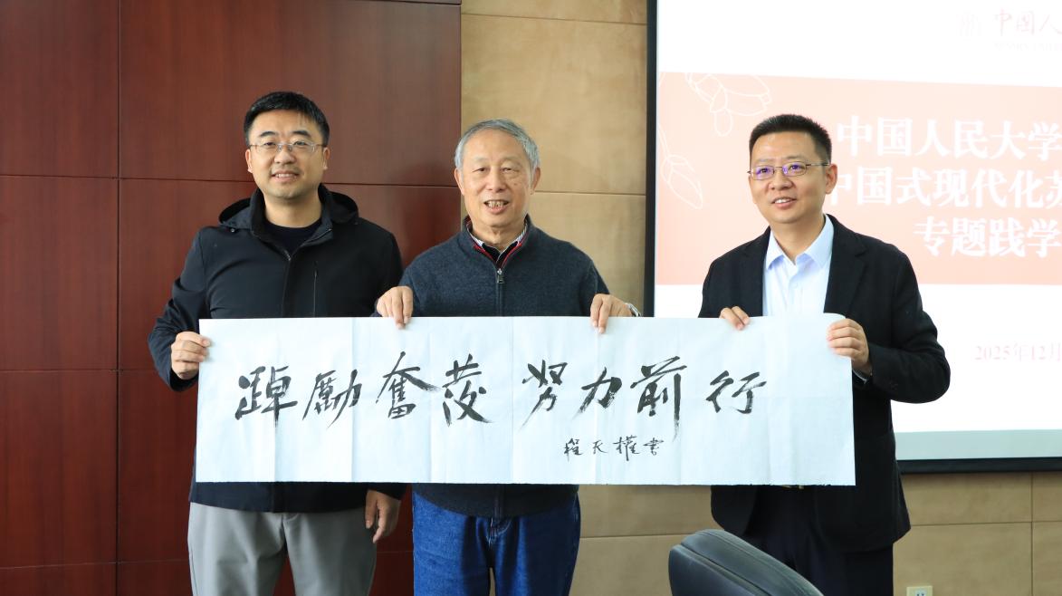 漫步校园,老同志们近距离感受到苏州校区建设发展的崭新面貌。苏州校区负责同志围绕校区发展历程、办学特色、成果成效、未来规划及在区域发展中的贡献等方面进行详细介绍,深入解读了学校多校区发展的政治意义、战略意义与发展意义。中国人民大学原党委书记程天权代表离退休党委向苏州校区赠送书法作品。他指出,苏州校区是中国人民大学校地融合育人的优秀范例,也是观察中国式现代化教育实践的重要窗口。苏州校区虽然占地面积不是很大,但通过多年办学汇聚了巨大能量,对国家和苏州城市发展建设产生了巨大影响。自学校党委决定在苏州办学以来,历届学校党委领导班子都心系苏州校区发展,一张蓝图绘到底,热切回应本地区发展需要,满足了人民的殷切期望。希望苏州校区继续围绕新时代重大主题课题,着力提升国际性、人文性、智慧性,早日成为建设学校新时代发展建设的新增长极、提升国际性的新引擎、服务长三角世界级城市群的新战略支点。学校关工委委员、老校长吴玉章孙女、中国人民大学教授吴本立表示,她本人将始终秉持“有求必应、尽心尽力”的个人信念,持续发挥余热,并努力动员老同志们充分发挥“五老”独特优势,为校区人才培养和文化传承贡献智慧,助力苏州校区在新时代谱写高质量发展的新篇章。