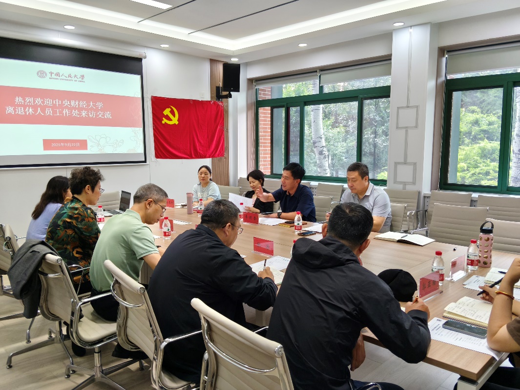 9月22日上午,中央财经大学离退休人员工作处曾伟晟处长、离退休党委李全敏书记一行7人来我校走访交流。中国人民大学离退休工作处处长、离退休党委书记李明奎,副处长、副书记杨海燕、副处长、副书记赵文广及相关科室负责人参加了交流会。交流会由李明奎主持。